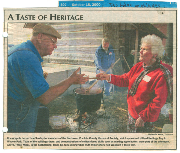 In the pioneer days, people who lived in Hilliard Franklin County spent a lot of their time growing, tending and harvesting the food that they would eat. They had to depend on the land, the plants and the animals to survive. They did not have supermarkets and fast food restaurants to provide the food that they needed.