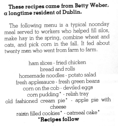 Below you will find some sample recipes from foods that pioneers would make from what they could find or grow on the farm. You will also find a slide show of the many different choices that people have today when they buy food or go out to eat.